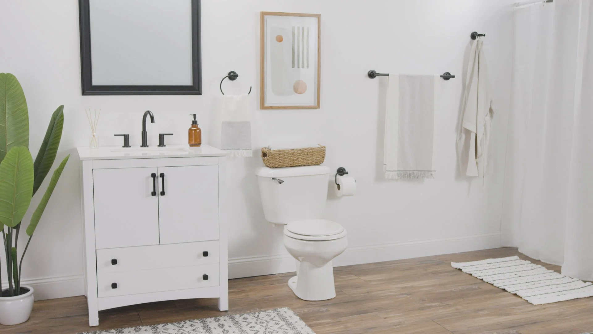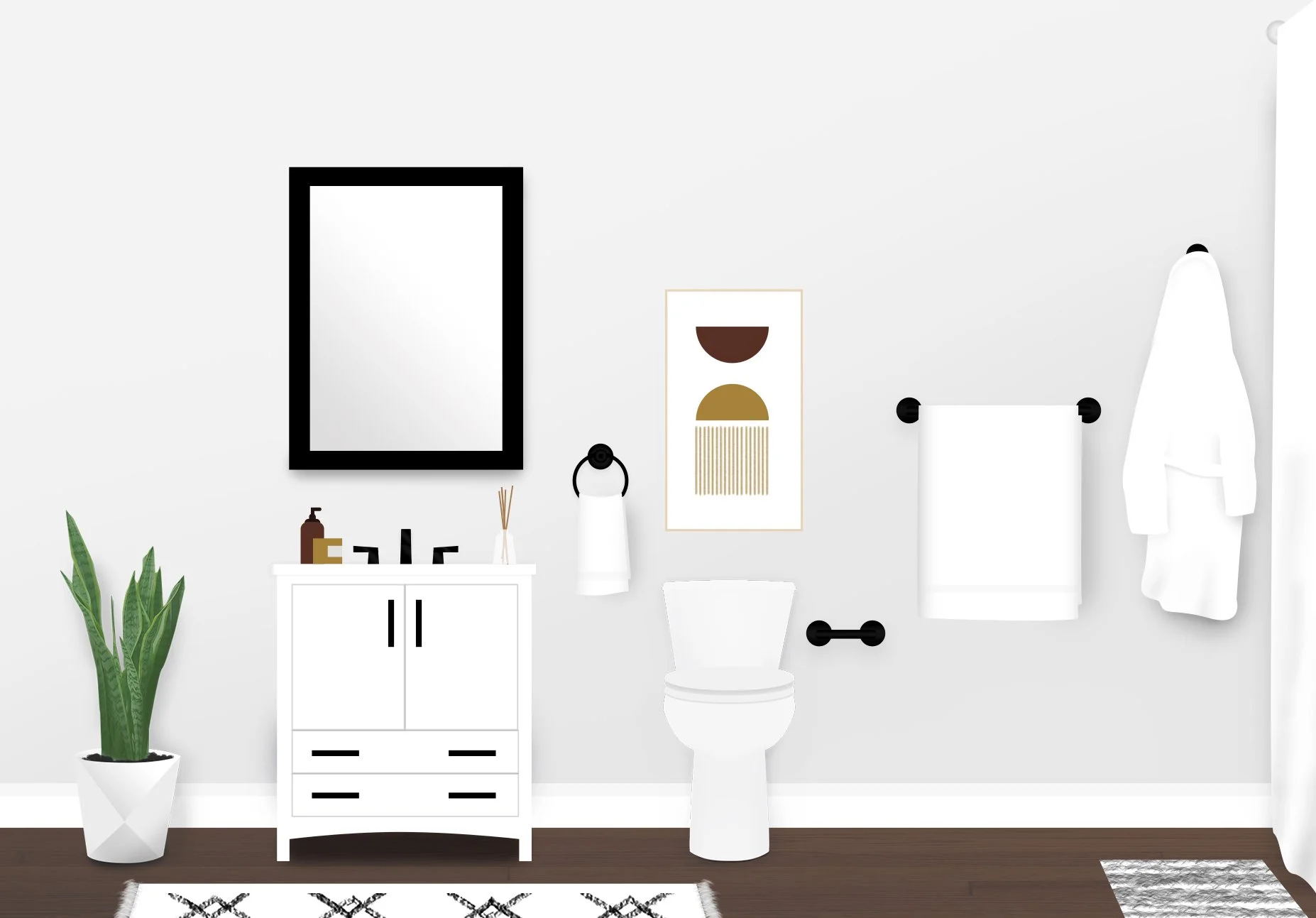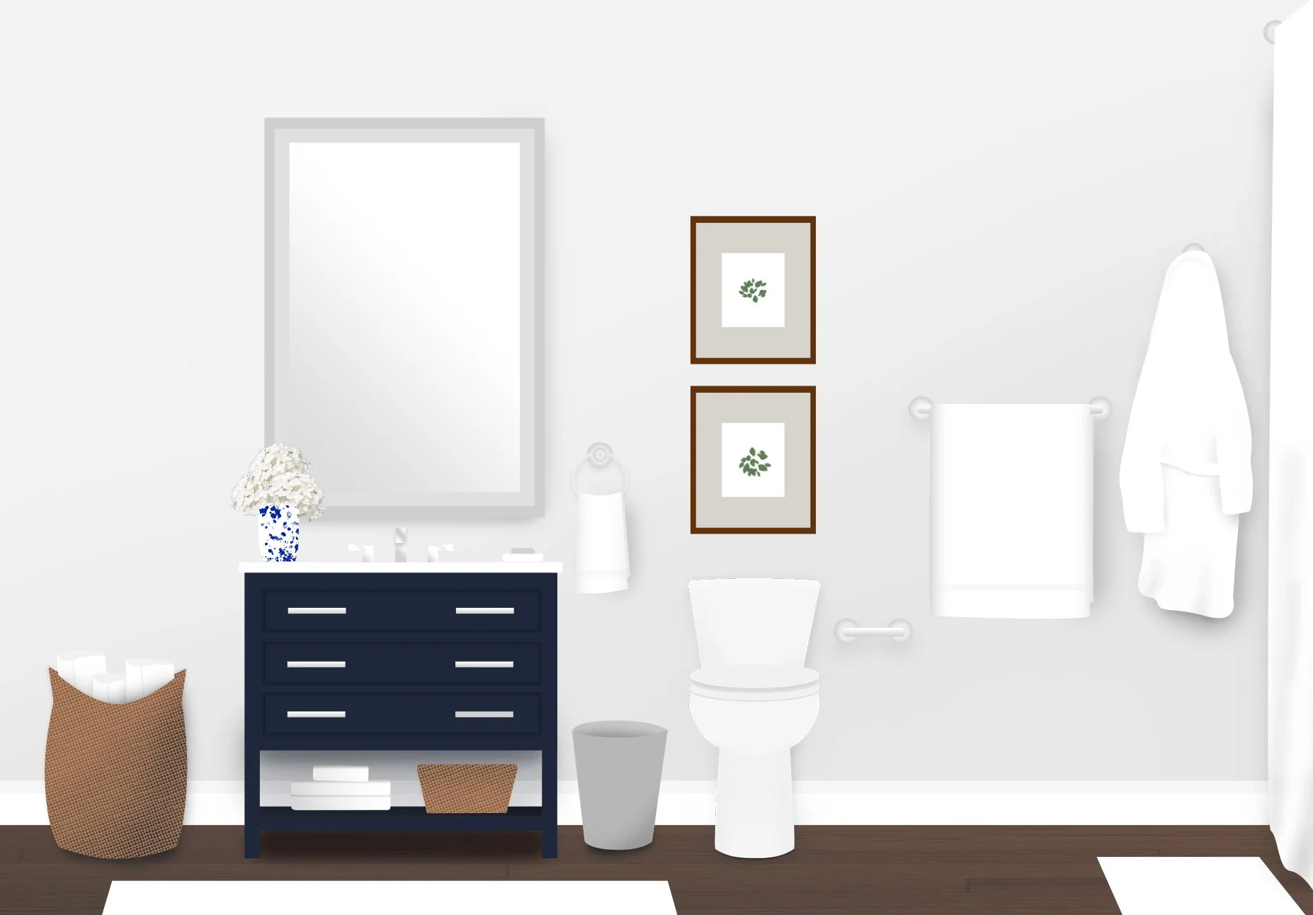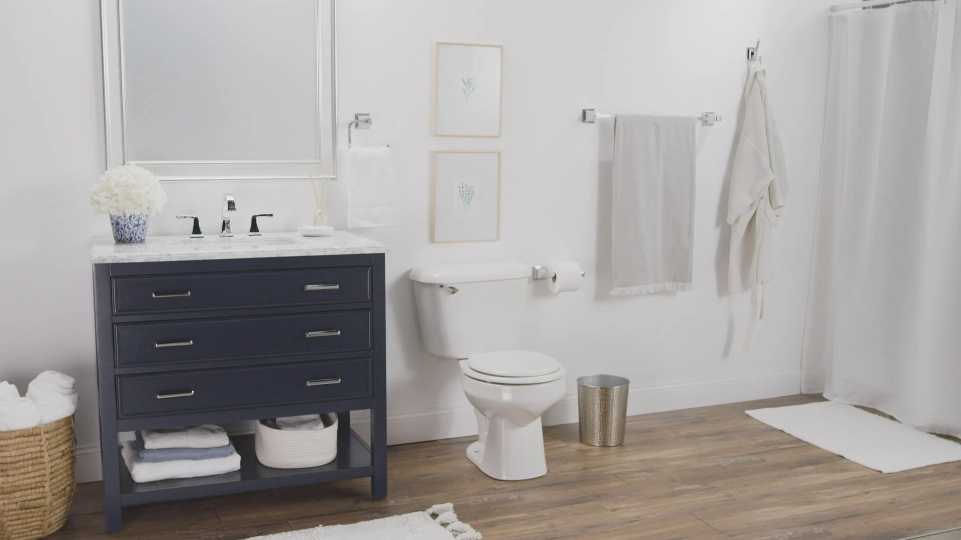 For the video shoot, I created mockups for the set design to help the team decide what was needed for props and framing for each bathroom style. Once sets were shot, I took the images from set and created sketches for each style to be used for a product video.